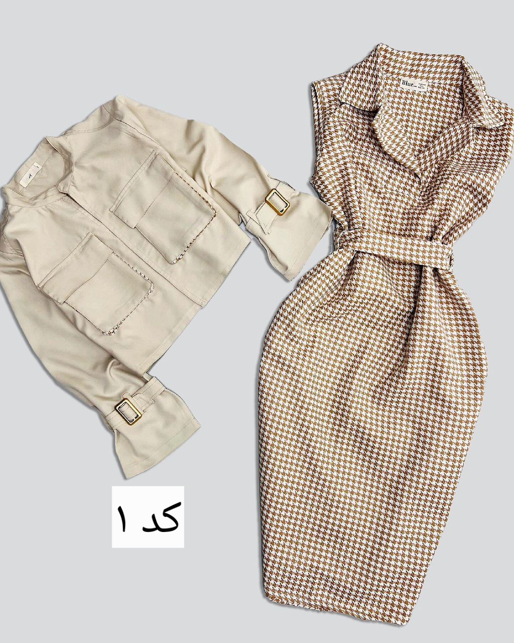 سارافون کت زنانه مدل نسرین دارای جنس پیردوپل و کتان در رنگبندی و سایزبندی قابل سفارش است قد کت حدود ۵۰ و قد سارافون حدود ۱۱۲