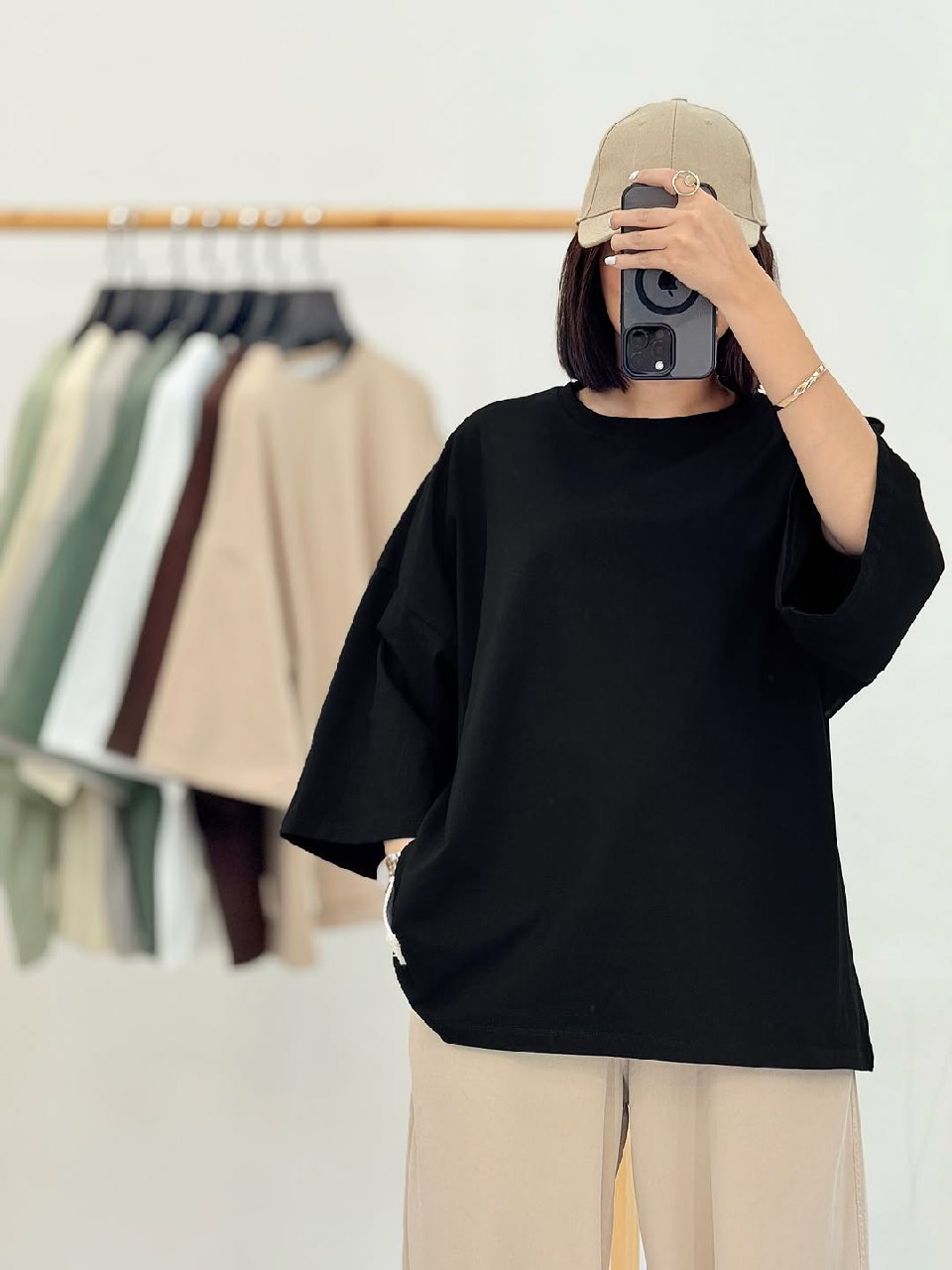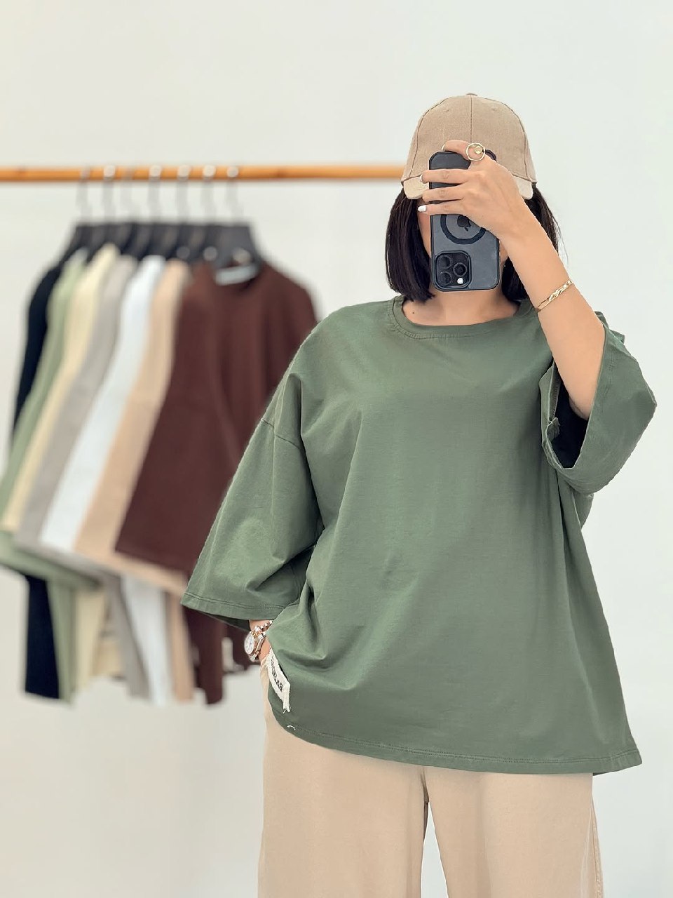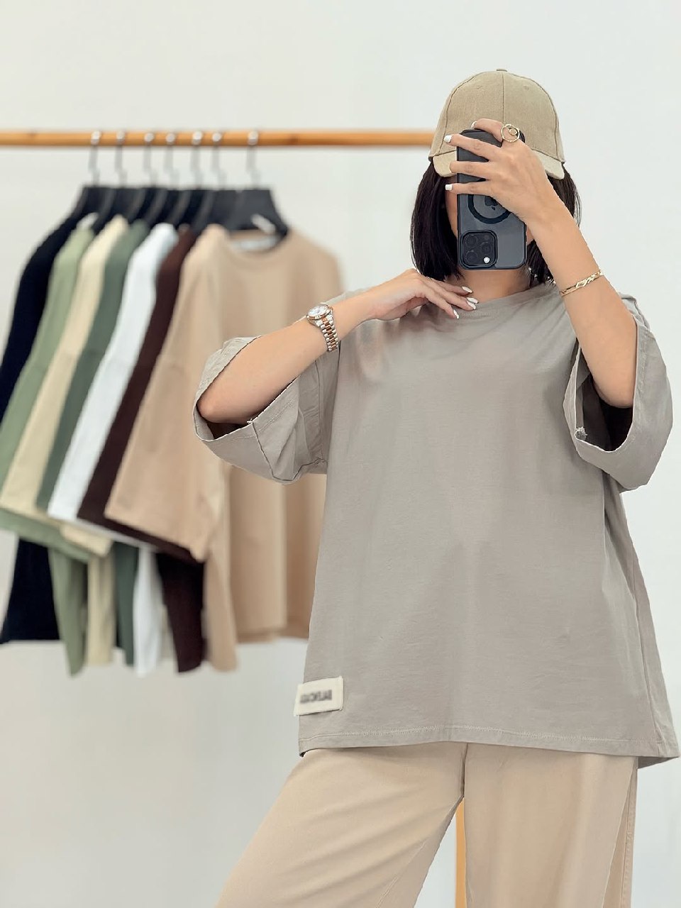 تیشرت زنانه مدل ترمه دارای جنس گلکسی در رنگبندی و فری سایز با قد حدود 67 و دور سینه حدود 126 قابل سفارش است