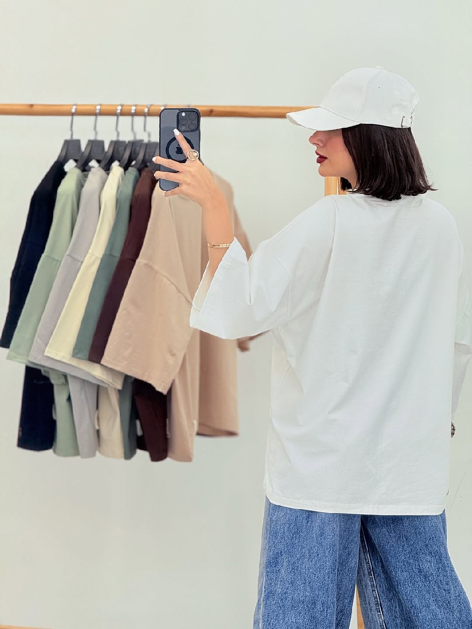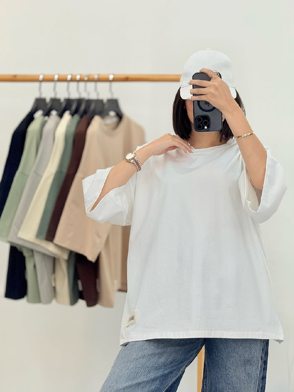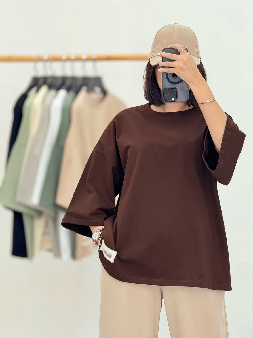 تیشرت زنانه مدل ترمه دارای جنس گلکسی در رنگبندی و فری سایز با قد حدود 67 و دور سینه حدود 126 قابل سفارش است