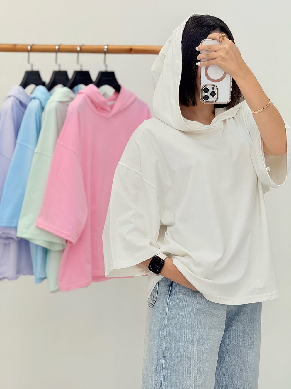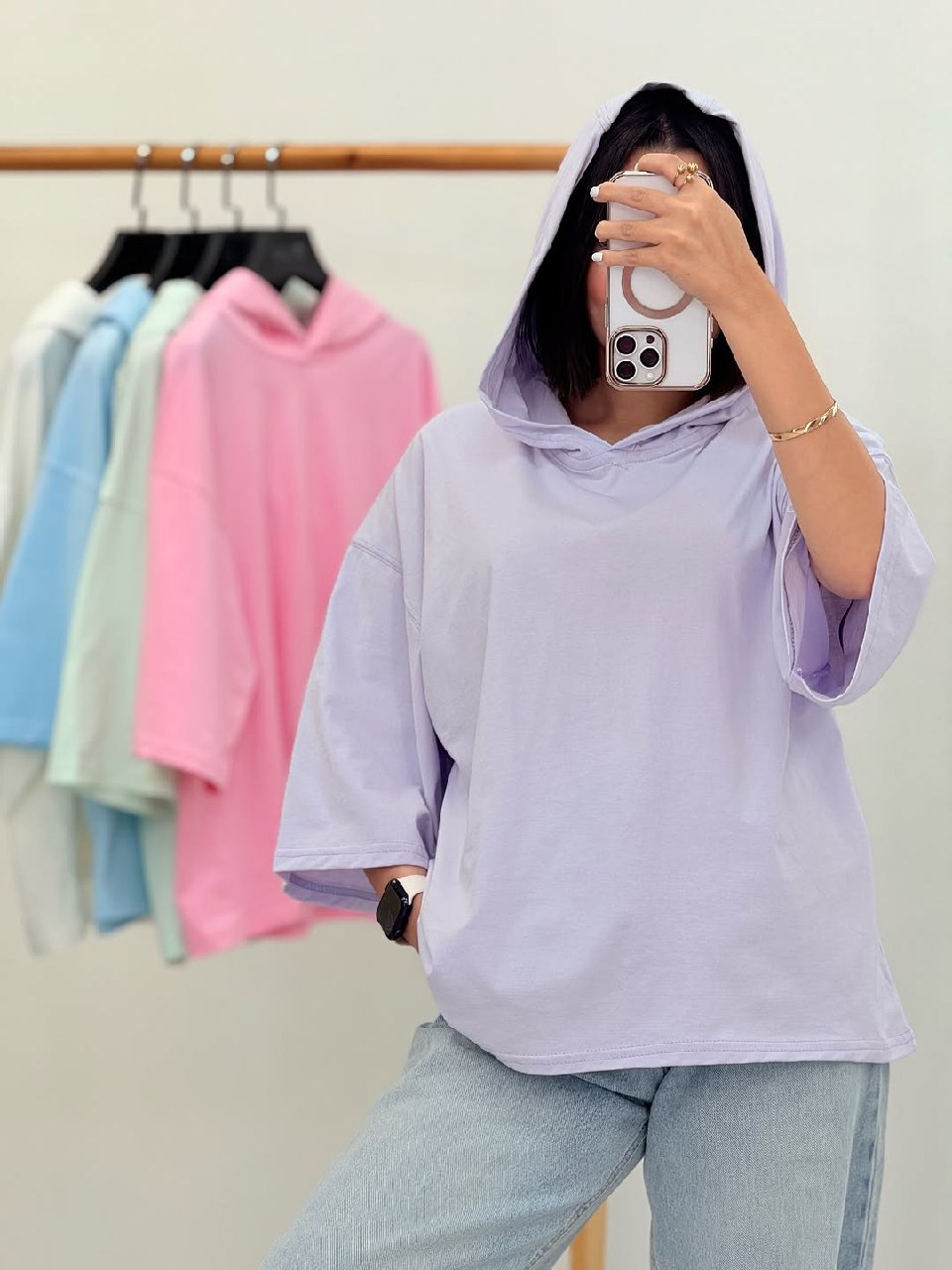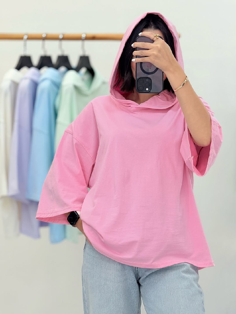 تیشرت زنانه مدل مبینا دارای جنس نخ پنبه در رنگبندی و فری سایز مناسب ۳۸ تا ۴۶ قابل سفارش است قد تیشرت حدود ۶۳ است