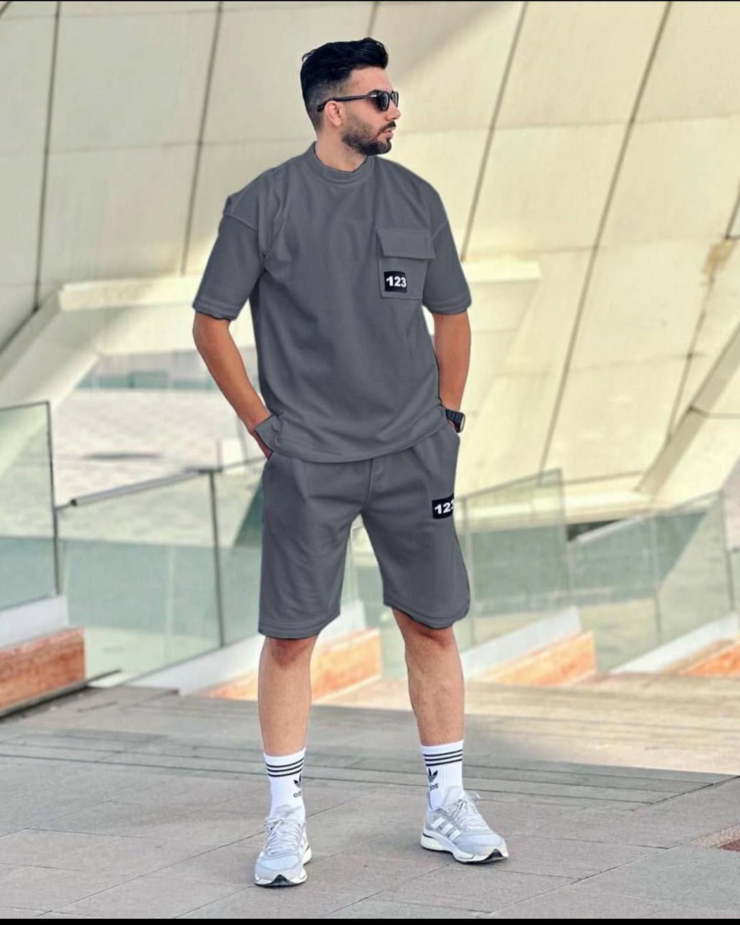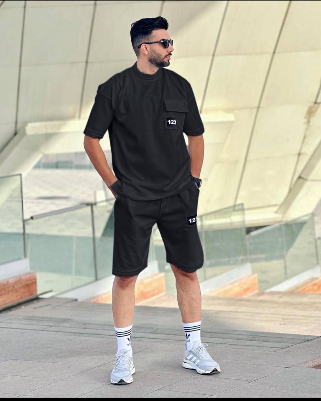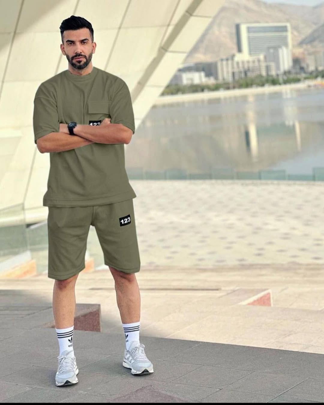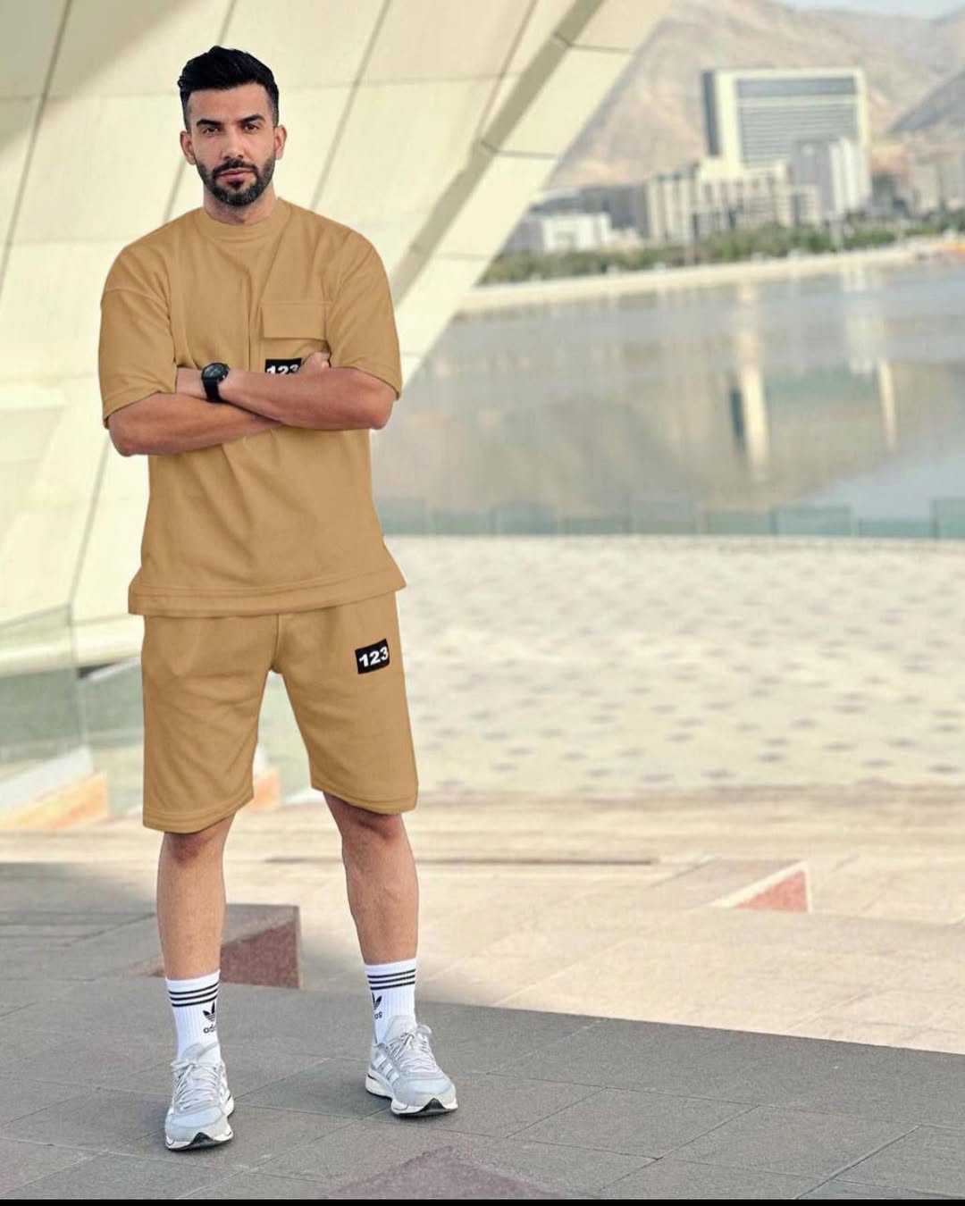 تیشرت شلوارک مردانه مدل شودی دارای جنس بیسکوییتی تک رنگ و در سایزبندی قابل سفارش است