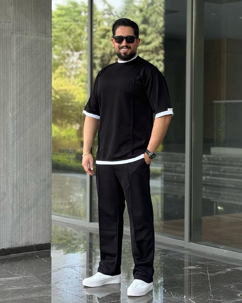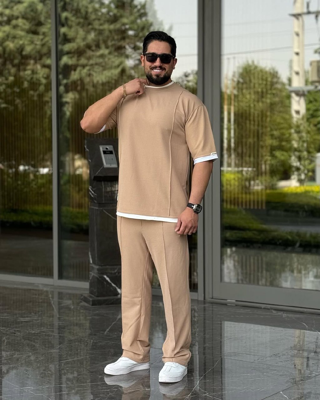 تیشرت شلوار مردانه مدل رهام دارای جنس بیسکوییتی در رنگبندی و سایزبندی قد تیشرت حدود ۷۲ و قد شلوار حدود۱۰۷ قابل سفارش است