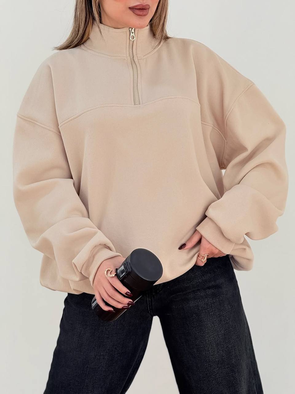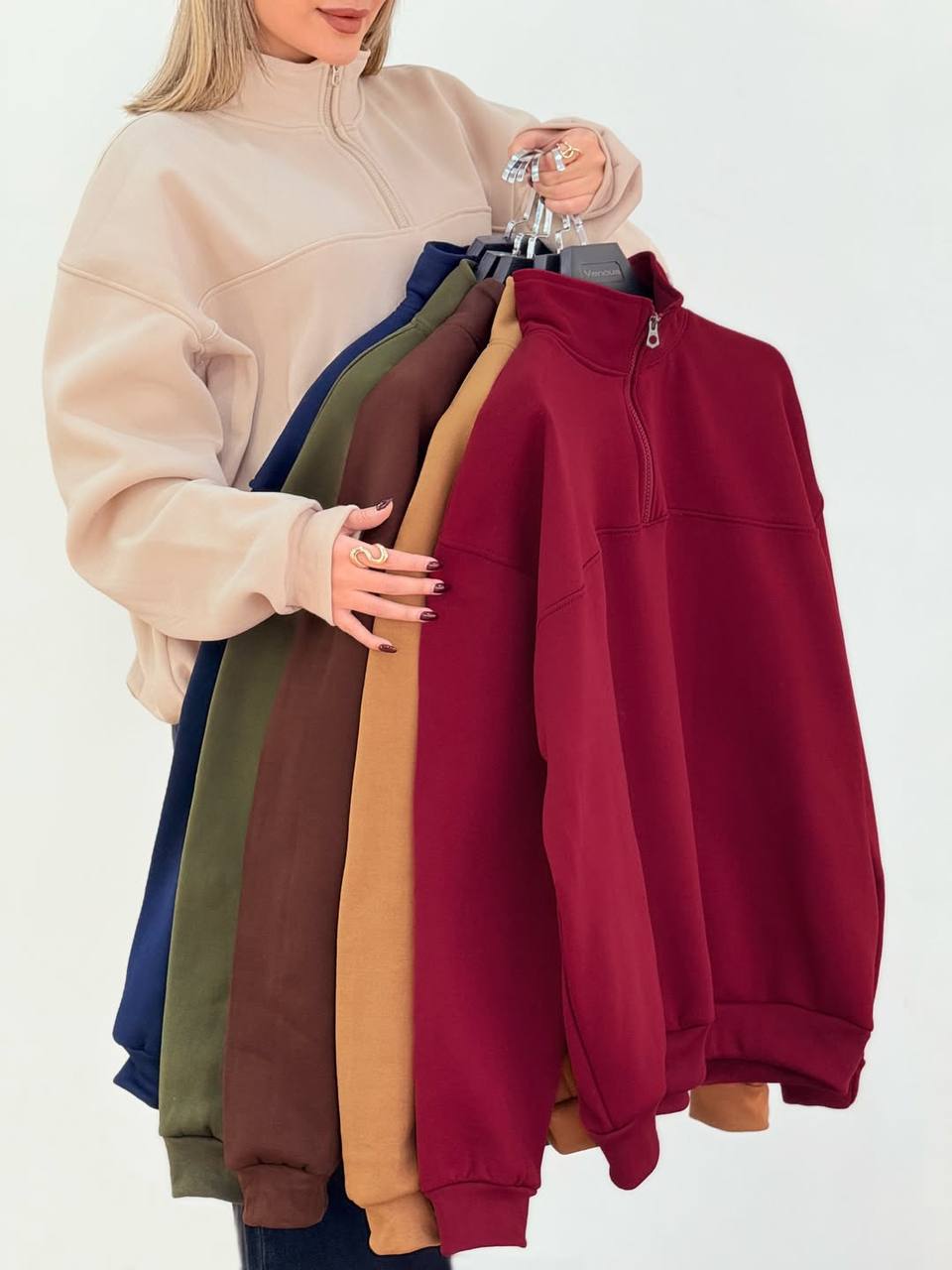 دورس نیم زیپ زنانه مدل املیا دارای جنس دورس داخل کرکی در رنگبندی و فری سایز مناسب ۳۸ تا ۴۶ قابل سفارش است قد حدود ۶۰