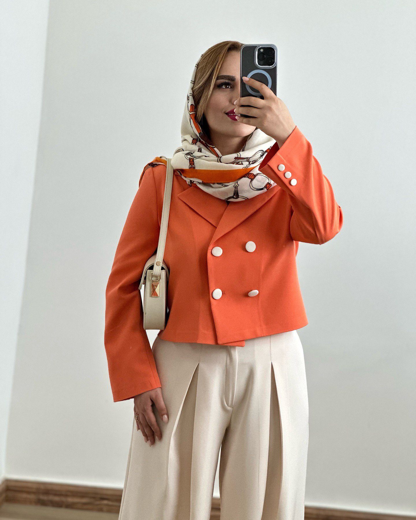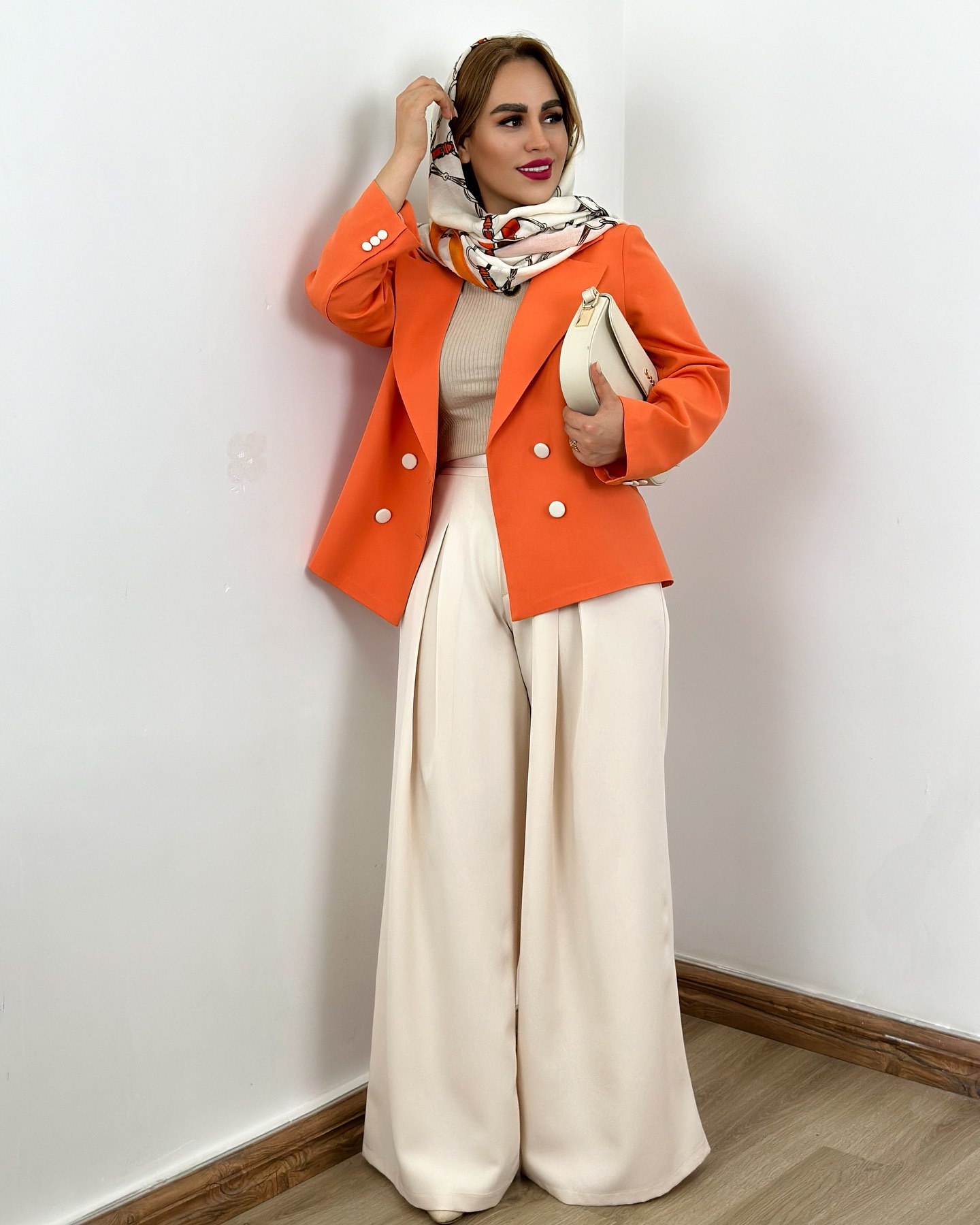 این ست کت و شلوار زنانه نارنج با طراحی مدرن و پارچه باکیفیت، انتخابی ایدهآل برای استایل عید و مناسبتهای خاص است.