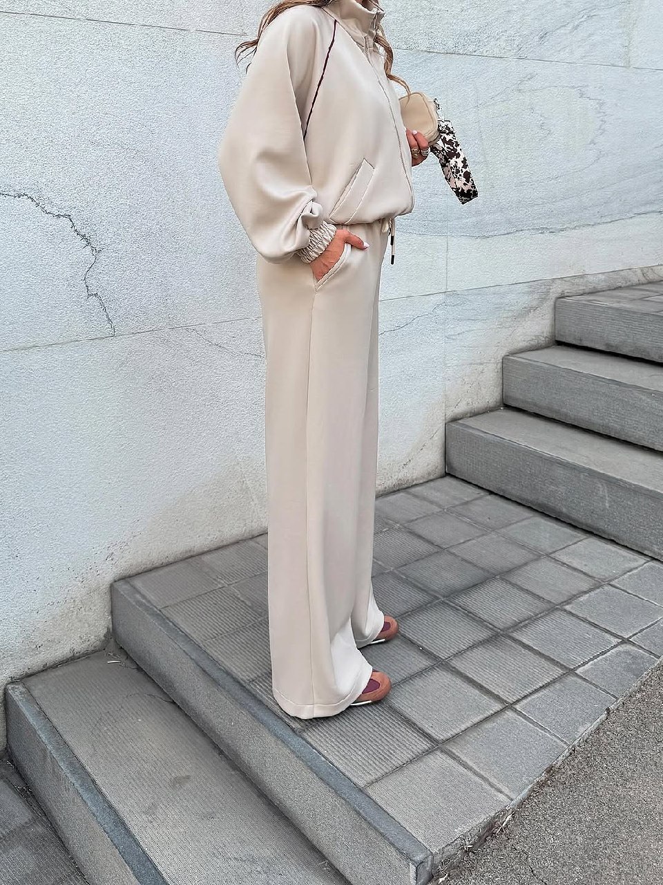 سوییشرت شلوار زنانه مدل نهال دارای جنس اویشو در رنگبندی و سایزبندی قابل سفارش است قد سوییشرت حدود ۵۷ و قد شلوار حدود ۱۰۶