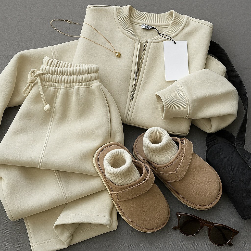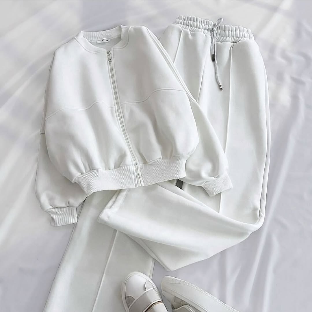 سوییشرت شلوار زنانه مدل ویشکا دارای جنس دورس تو کرکی ضخیم در رنگبندی و فری سایز مناسب 38 تا 46 قابل سفارش است قد شلوار حدود 107 و قد سوییشرت کراپ حدود 56