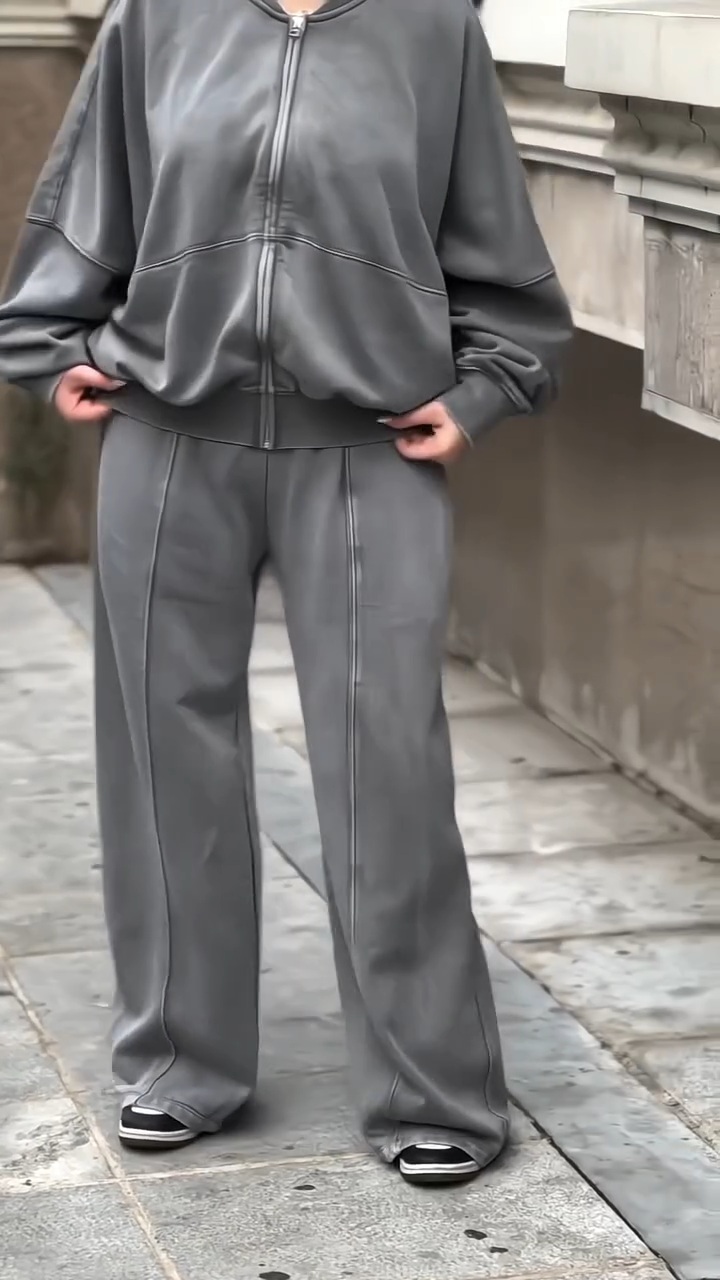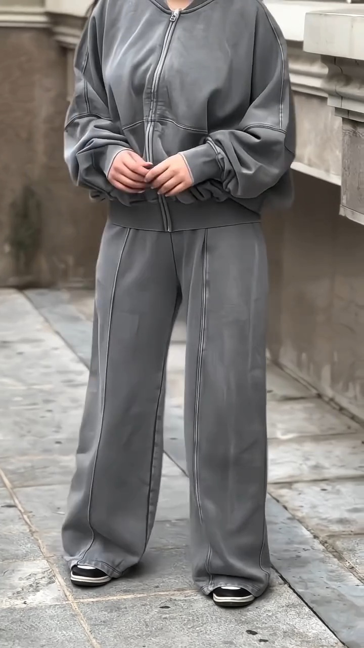سوییشرت و شلوار زنانه مدل آلما دارای جنس دورس سه نخ توکرکی تک رنگ و فری سایز قابل سفارش است