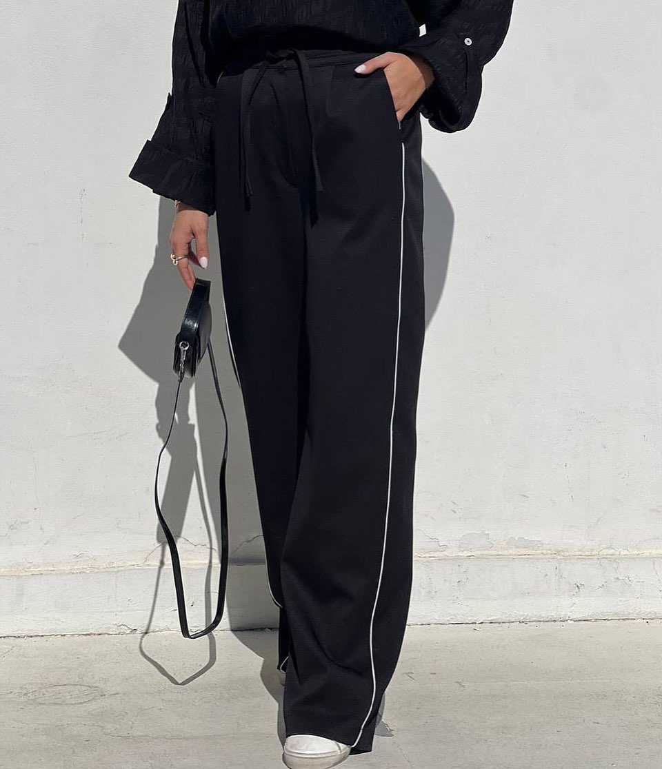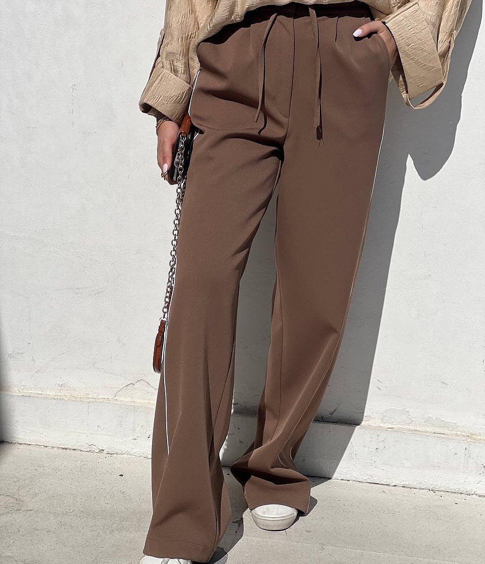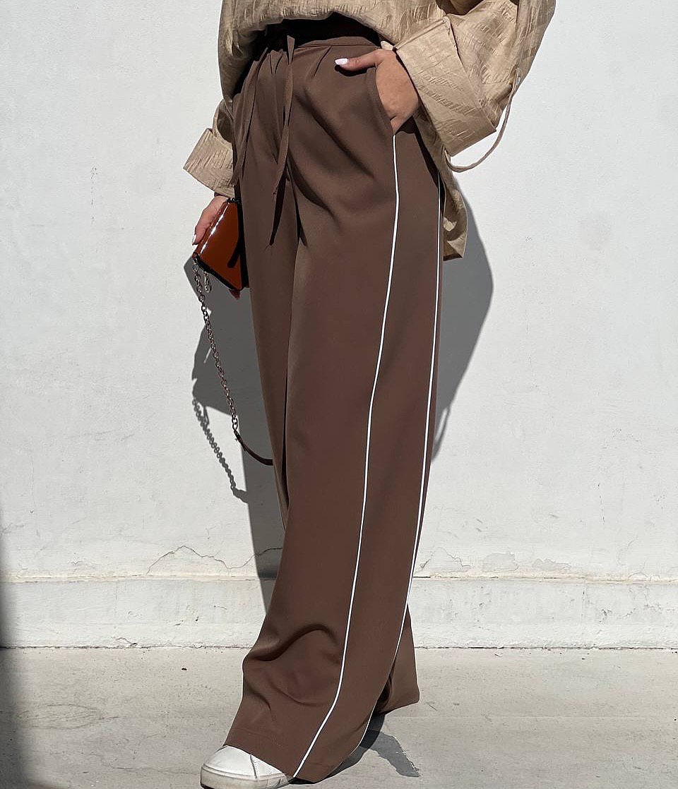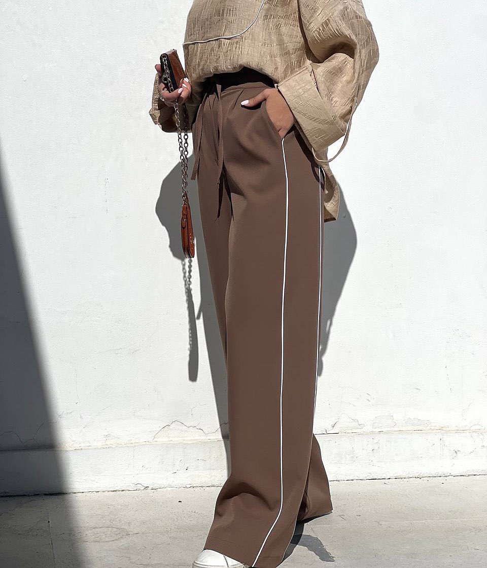 شلوار زنانه مدل آینور دارای جنس مازراتی دوبل در رنگبندی و سایزبندی با قد حدود 106 قابل سفارش است.