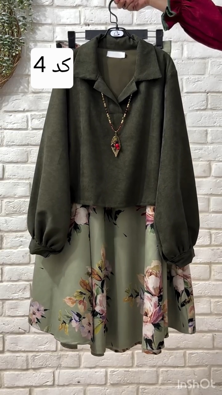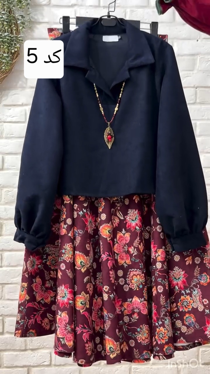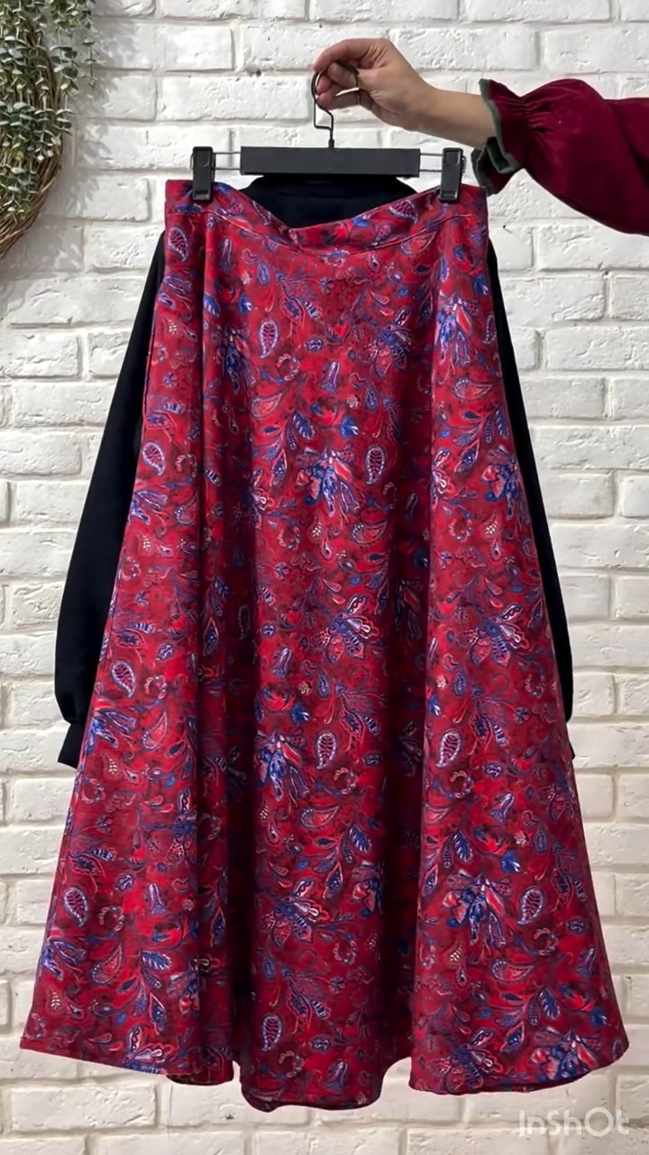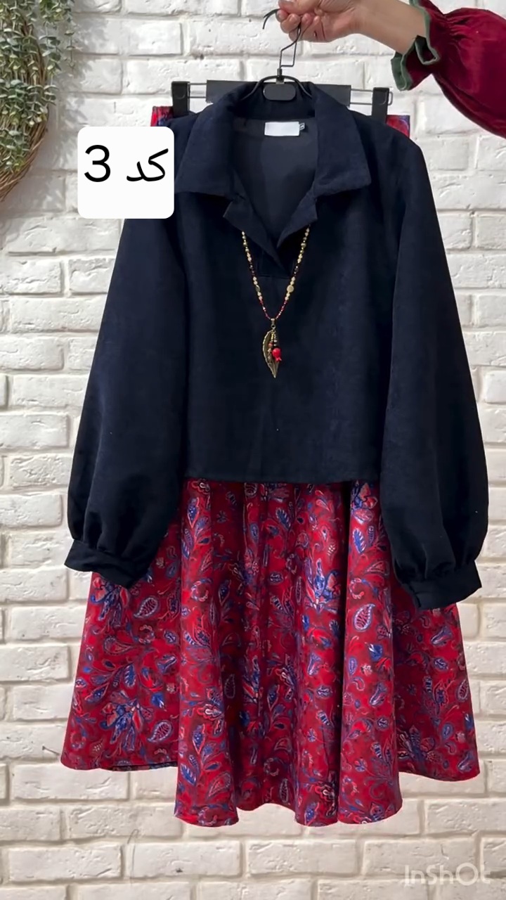 شومیز دامن زنانه مدل ماهنی شومیز دارای جنس مخمل کبریتی و دامن دارای جنس کتان قد شومیز حدود 50 و قد دامن حدود 97