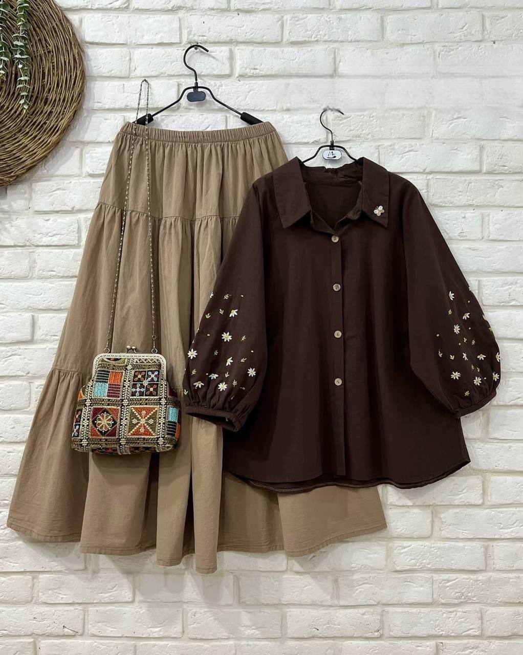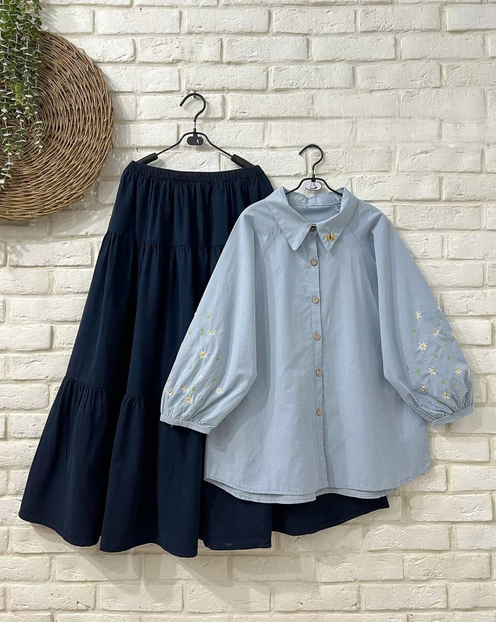 شومیز دامن زنانه مدل گلناز دارای جنس لینن در رنگبندی و سایزبندی قابل سفارش است قد شومیز حدودا 68 و قد دامن حدودا 90 میباشد.رنگ ها بر اساس رنگ شومیز تعریف شده است.