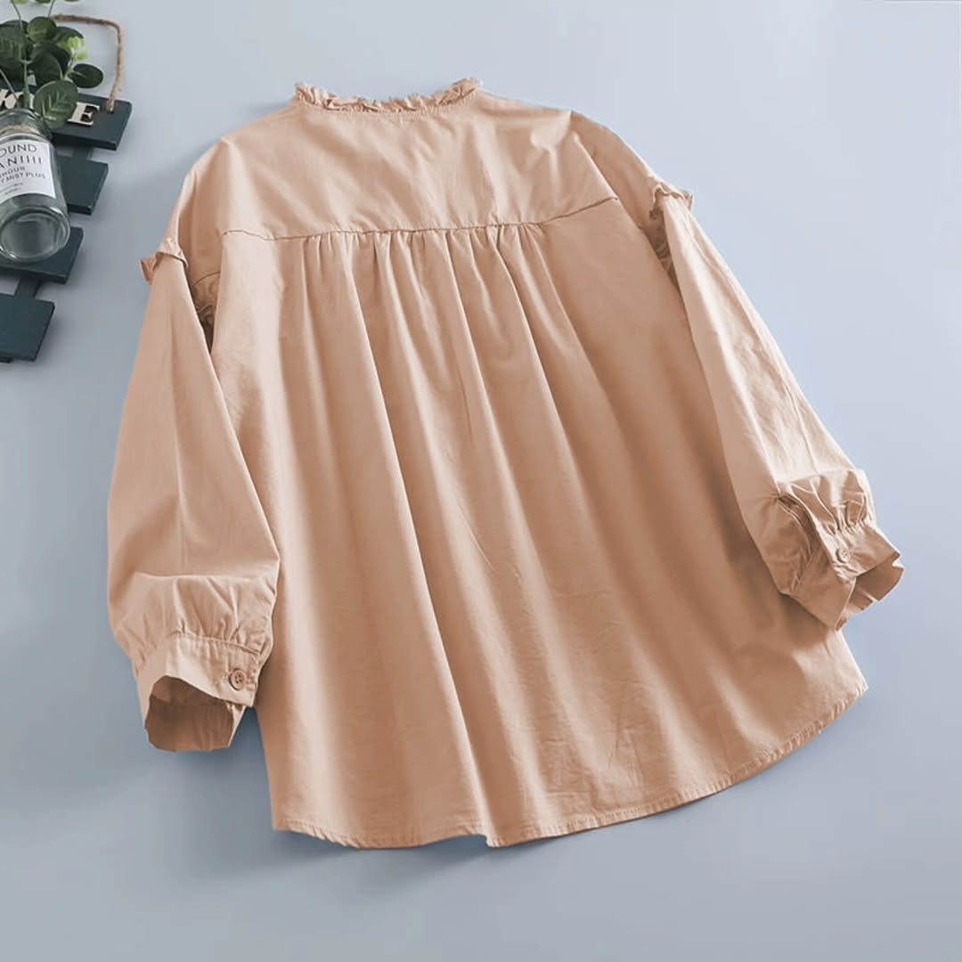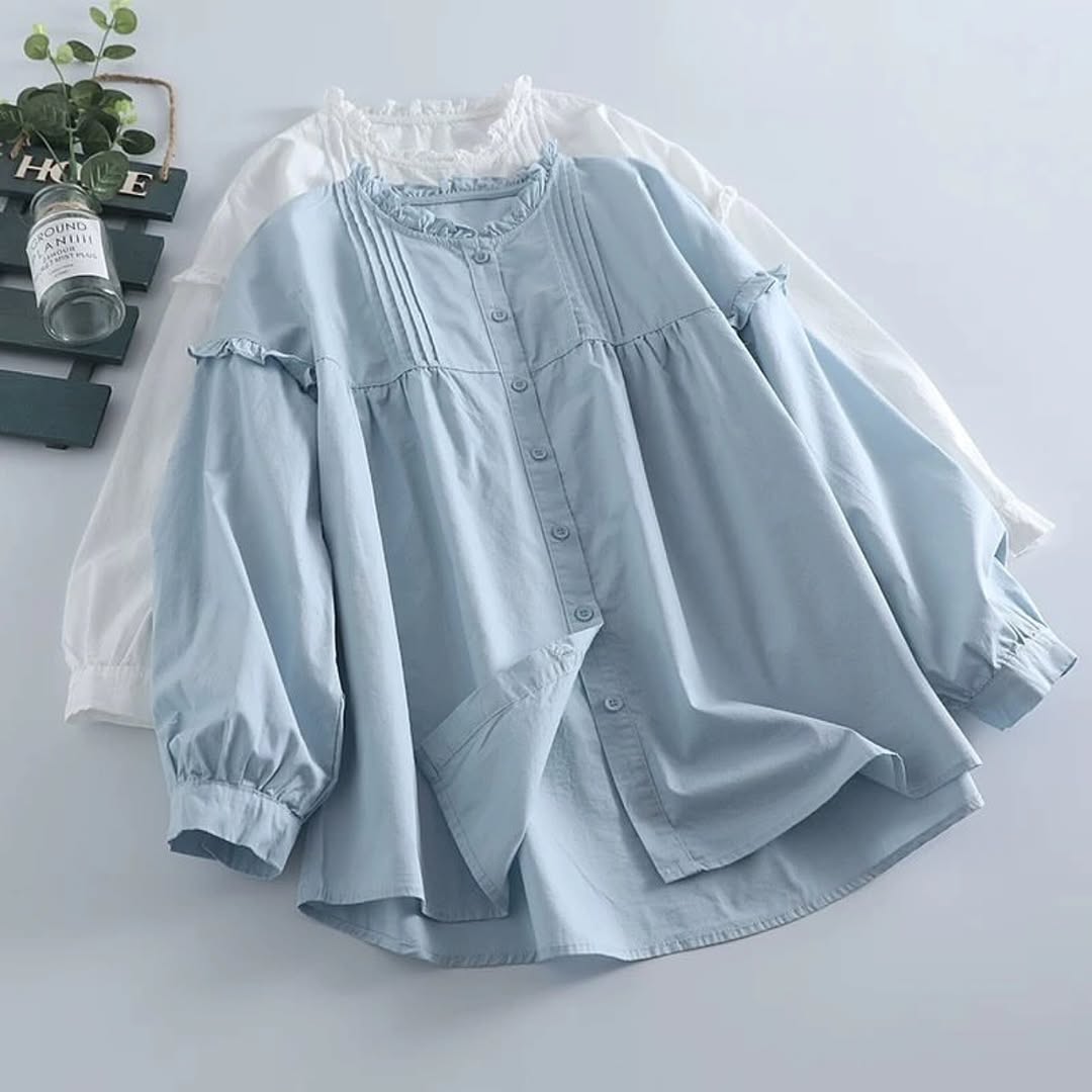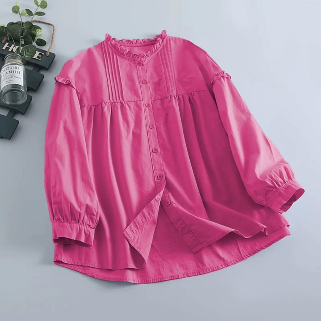 شومیز زنانه مدل آسمان دارای جنس لینن در زنگبندی و فری سایز برای سایز های 38 تا 46 با قد حدودا 67 قابل سفارش است.