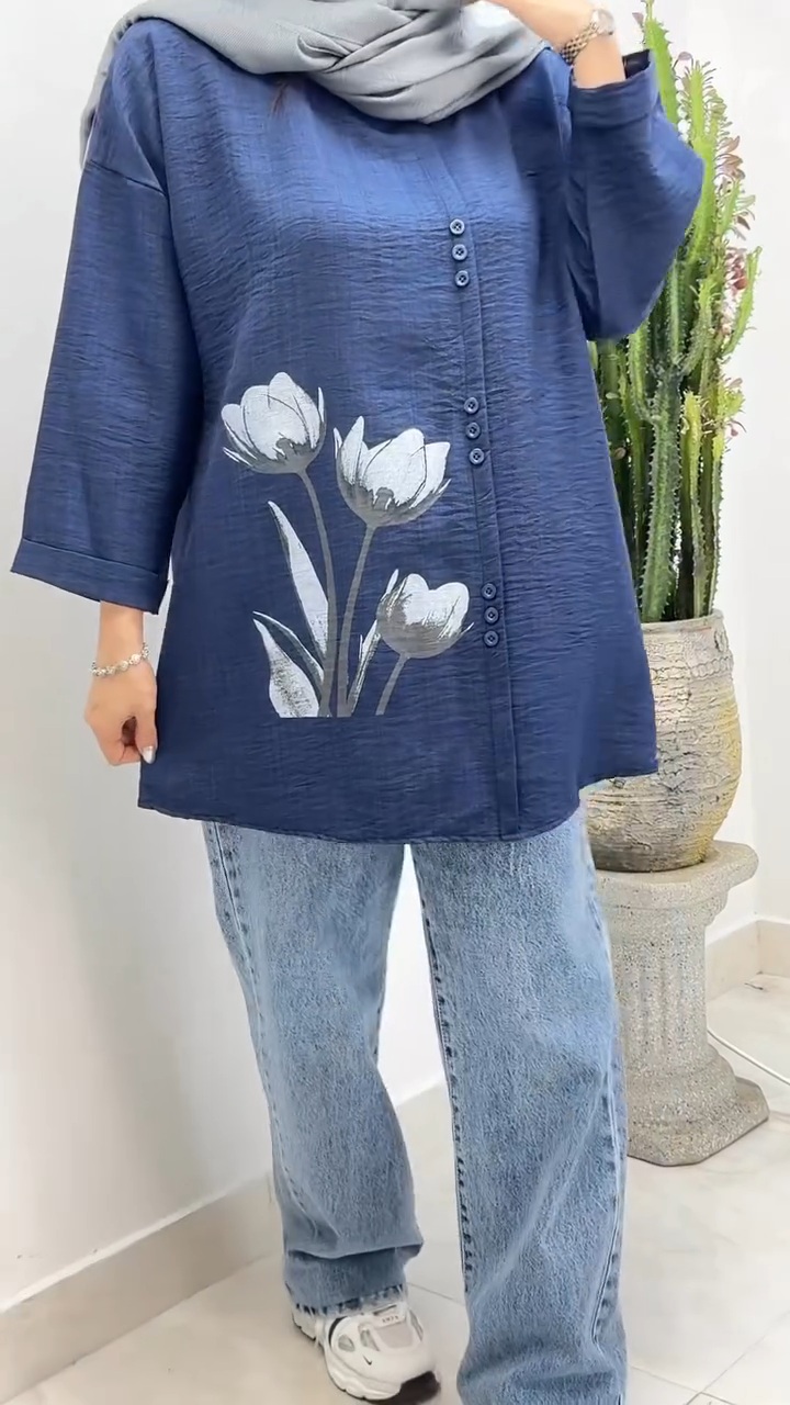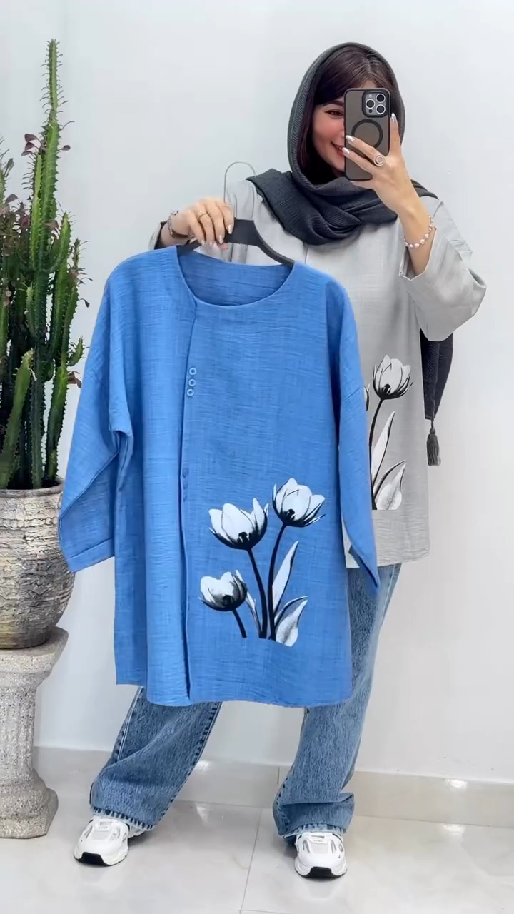 شومیز زنانه مدل برنا دارای جنس شانتون صوفیا در رنگبندی و فری سایز مناسب 38 تا 46 با قد حدودا 75 قابل سفارش است