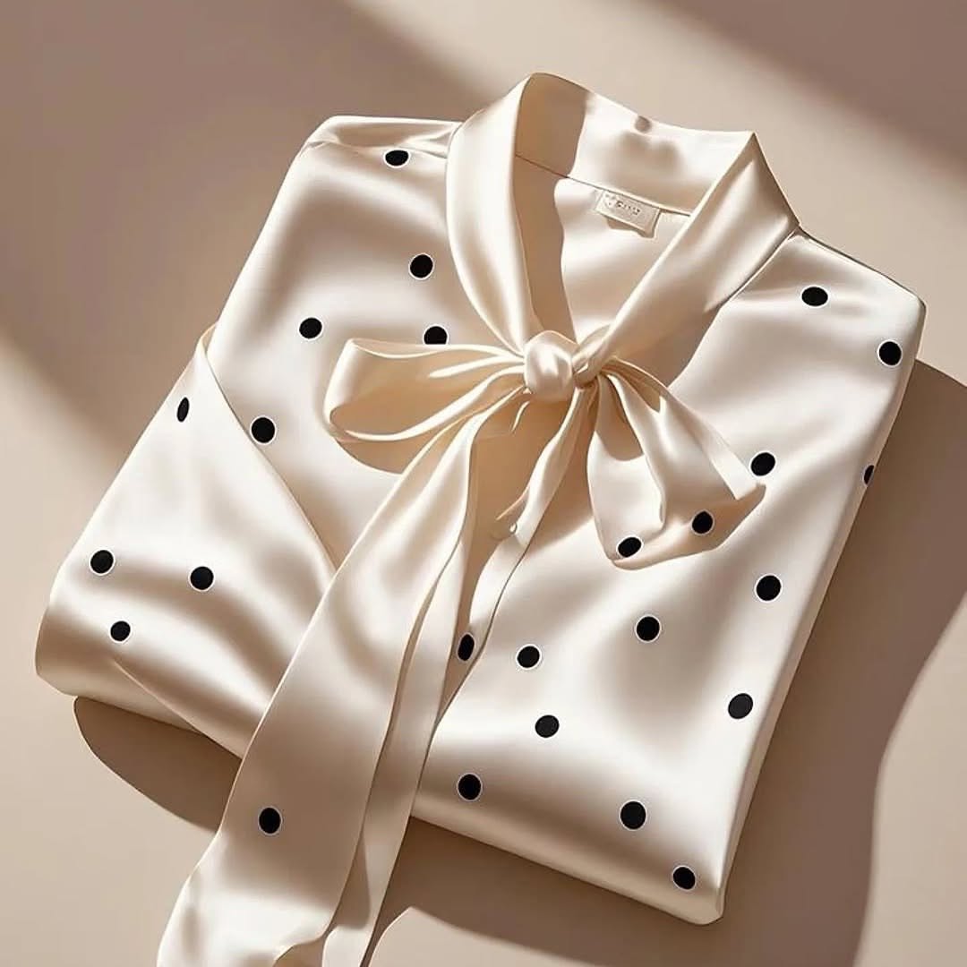شومیز زنانه مدل خالدار دارای جنس ساتن در رنگبندی و سایزبندی با قد حدودا 67 قابل سفارش است.