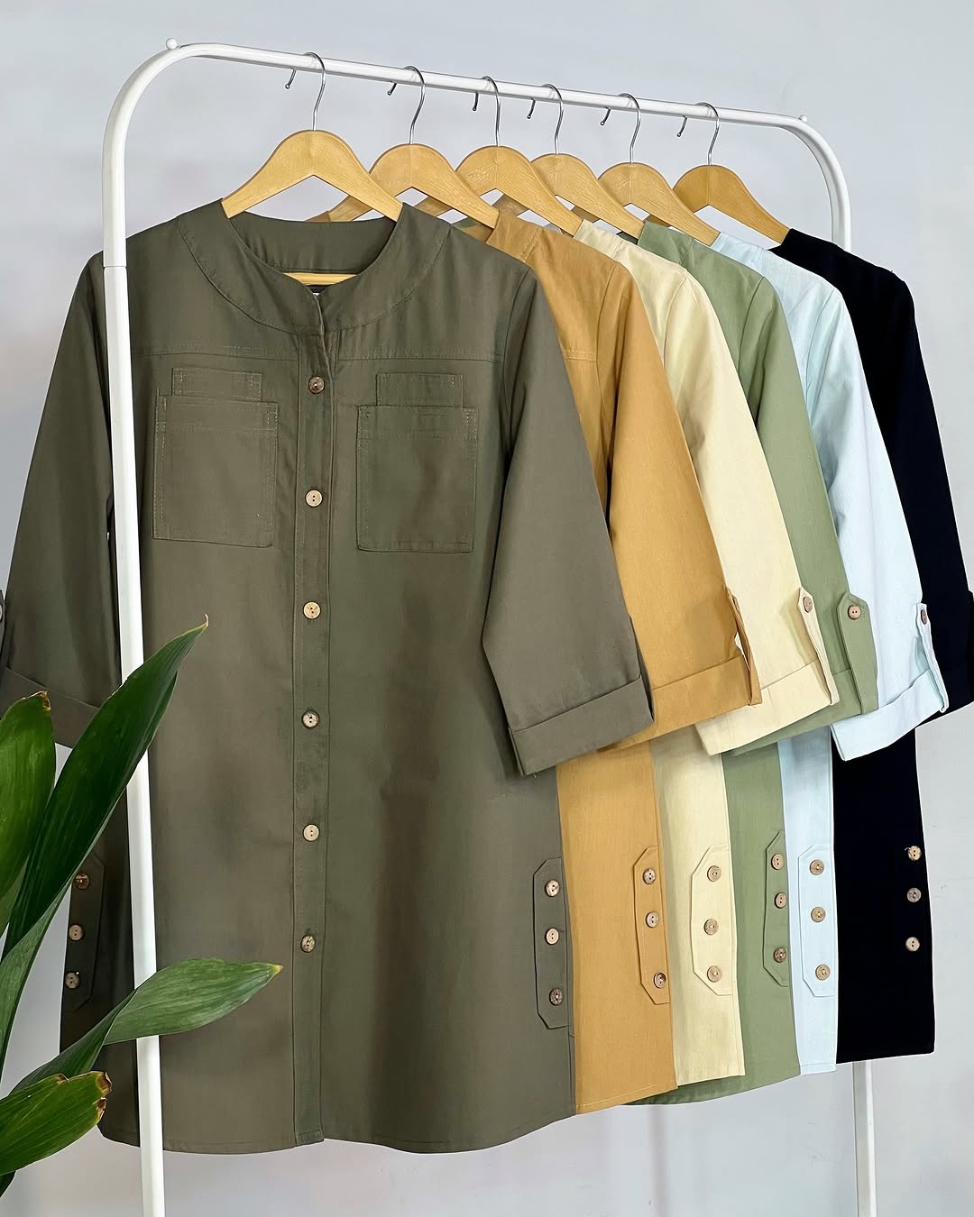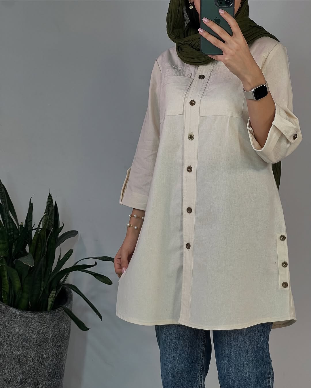 شومیز زنانه مدل روناک دارای جنس لینن در رنگبندی و سایزبندی با قد حدودا ۹۰ قابل سفارش است.