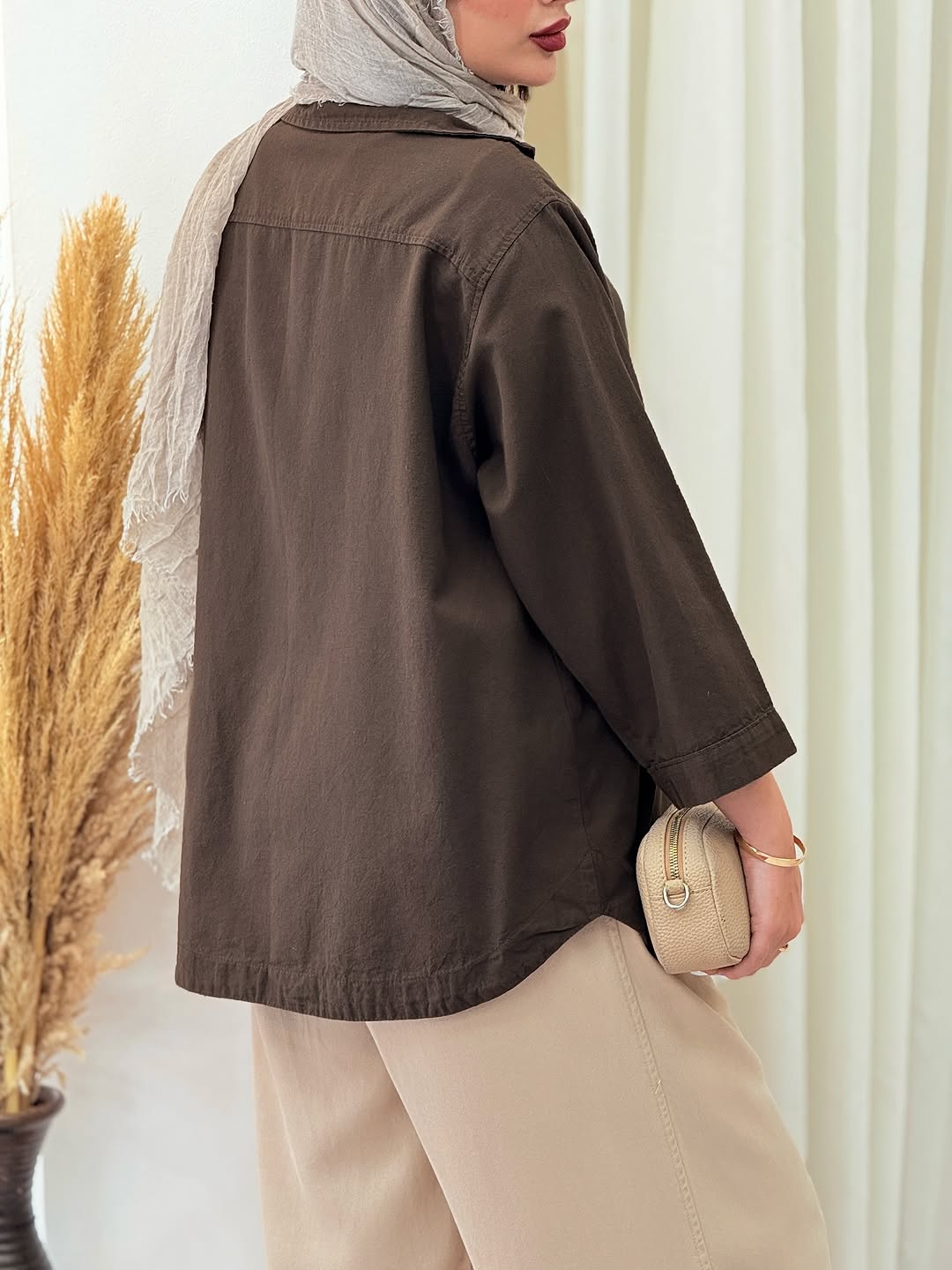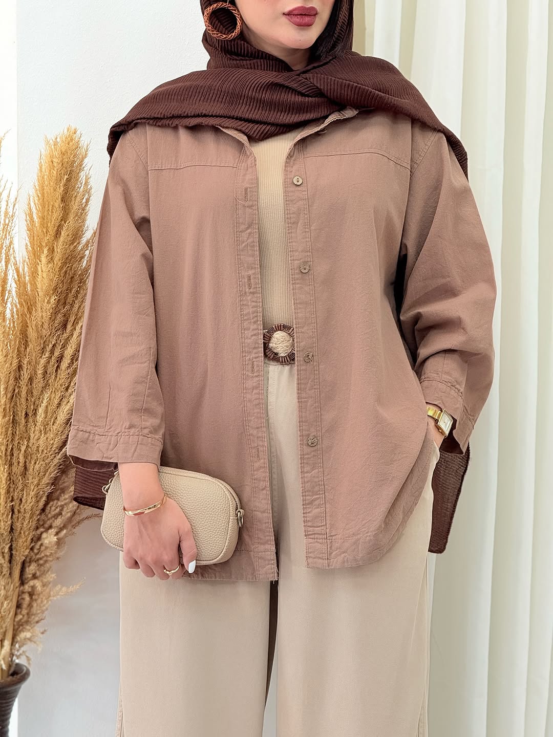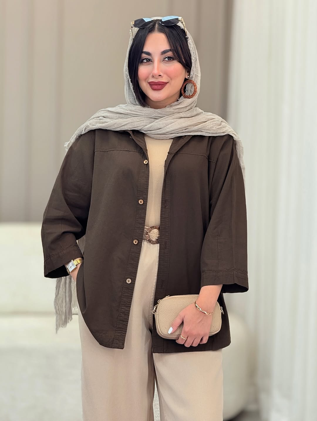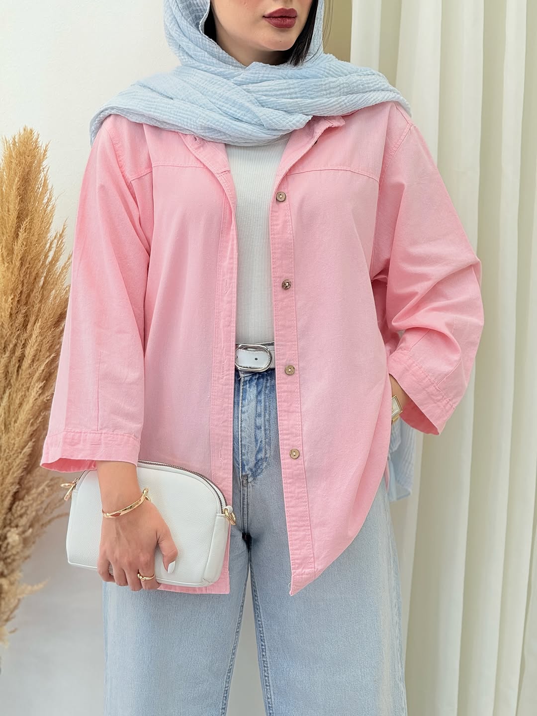 شومیز زنانه مدبل نجما دارای جنس لینن در رنگبندی و سایزبندی با قد حدود 63 قابل سفارش است