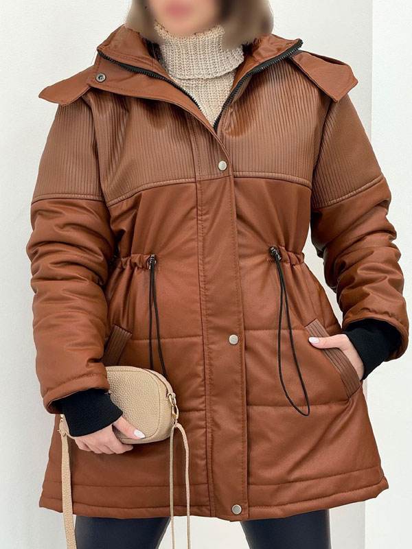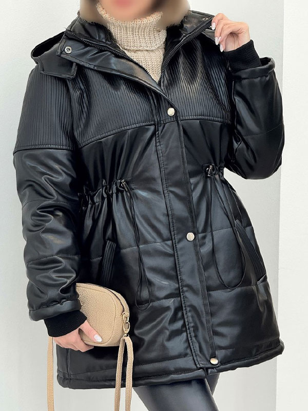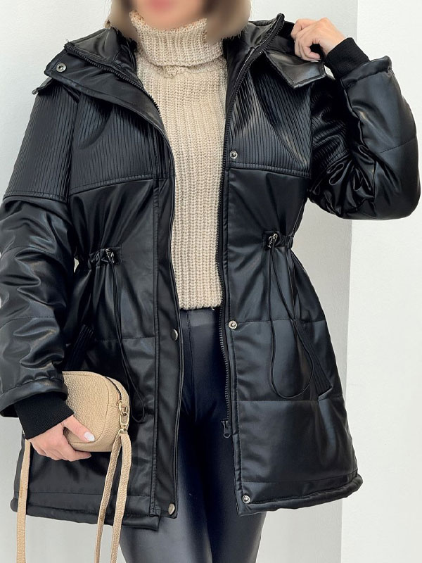 کاپشن چرم زنانه مدل آترین دارای جنس چرم و آستر دار در رنگبندی و سایزبندی با قد حدودا 81 قابل سفارش است