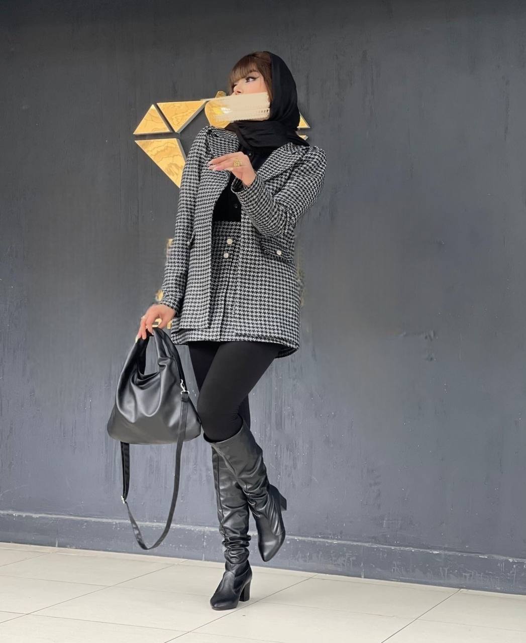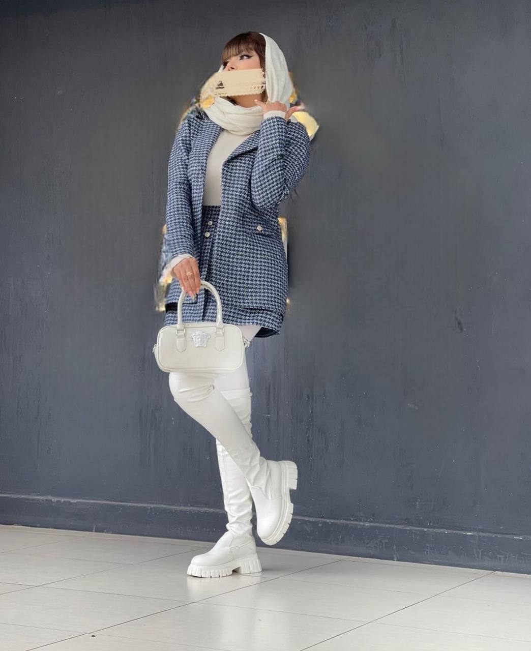 کت دامن زنانه مدل ثمر دارای جنس پیردوپل در رنگبندی و سایزبندی قابل سفارش است قد دامن حدود 40 و قد کت حدود 75