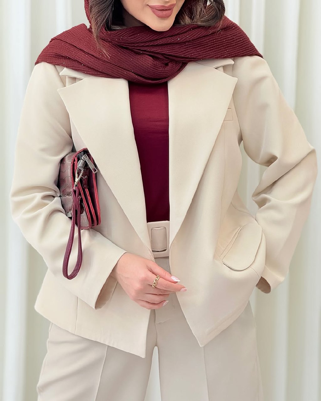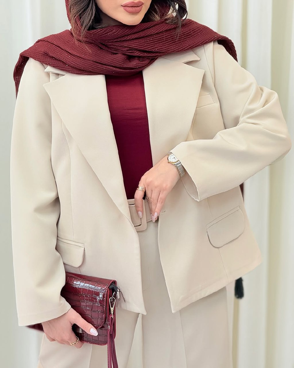 کت زنانه مدل گاندی دارای جنس مازراتی نخ توئیست در رنگبندی و سایزبندی با قد حدودا ۶۵ قابل سفارش است.