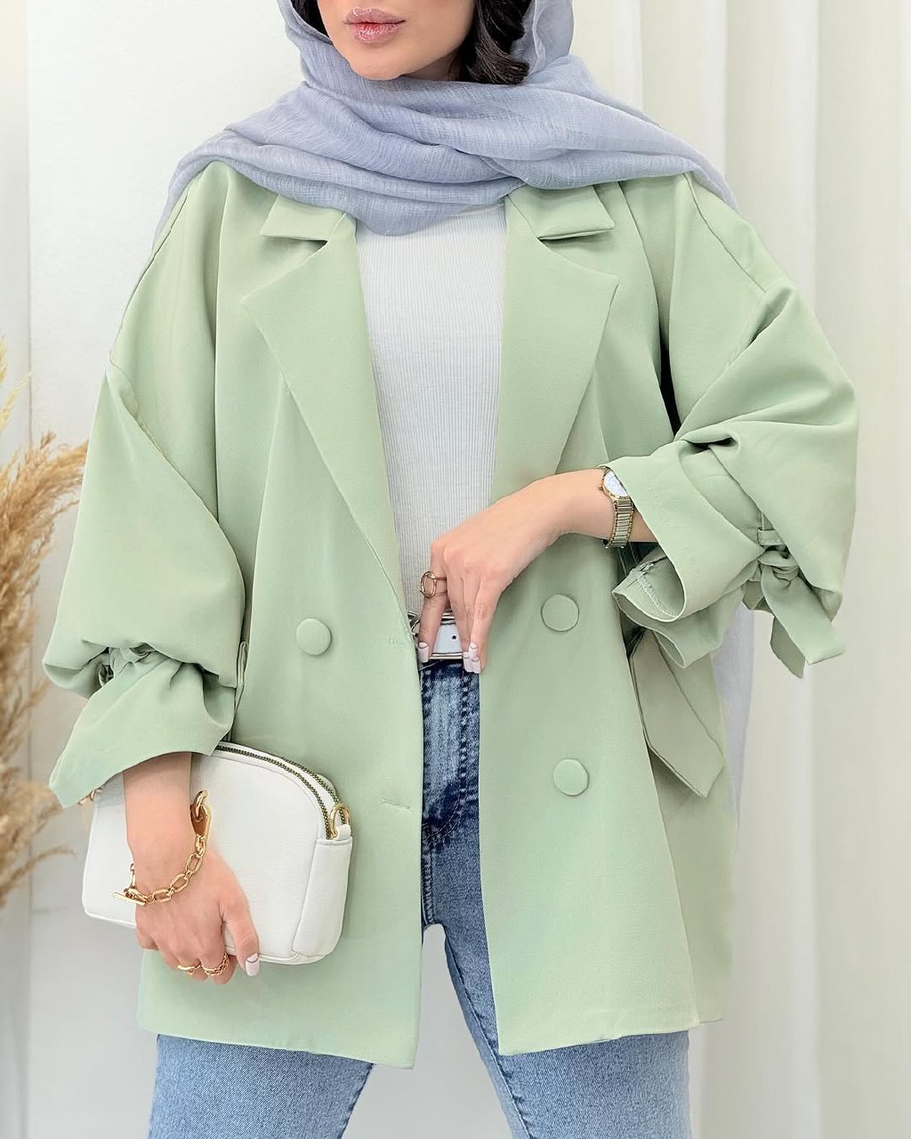 کت زنانه مدل یاسی دارای جنس مازراتی در رنگبندی و سایزبندی با قد حدودا ۷۰ قابل سفارش است.