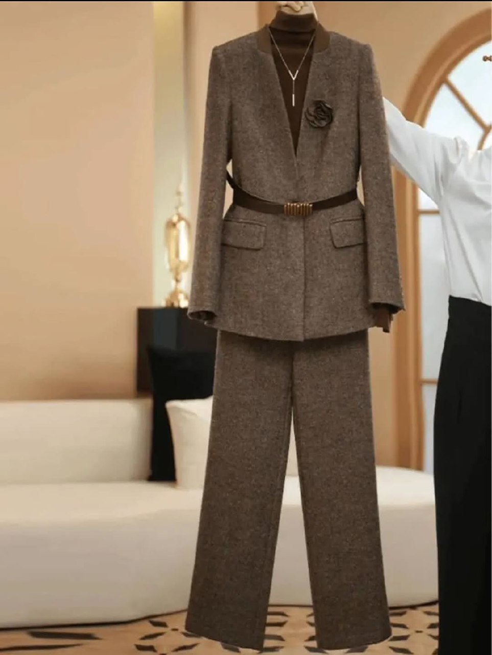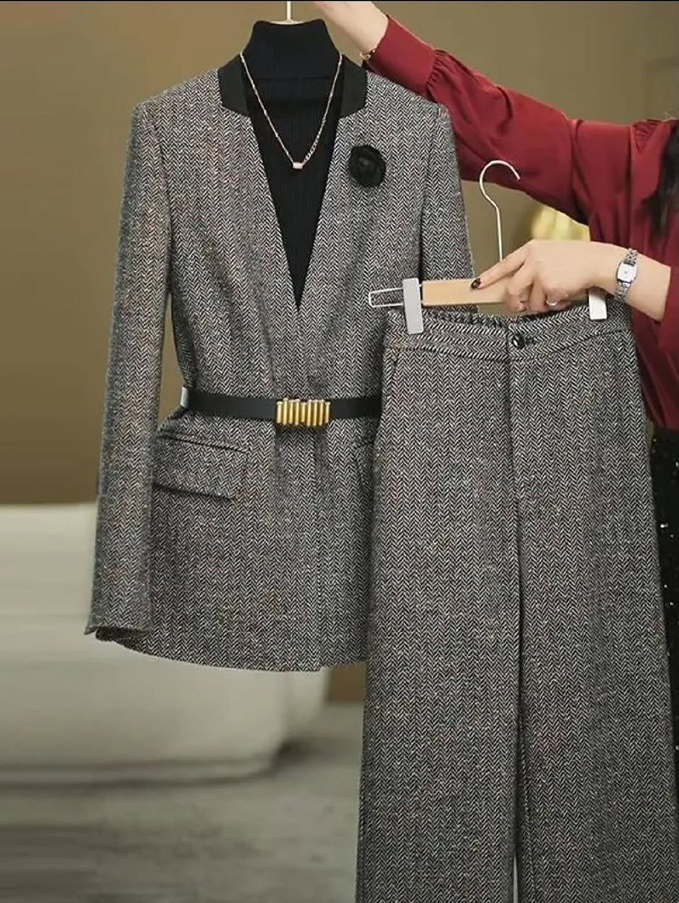 کت شلوار زنانه مدل آنیا دارای جنس توئیت جناغی در رنگبندی و سایزبندی قابل سفارش است قد شلوار حدود ۱۰۰ و قد کت حدود ۷۰ این محصول کمربند ندارد