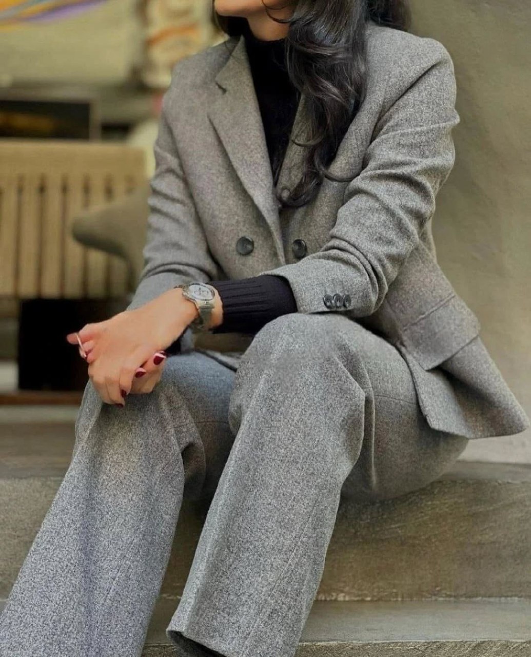 کت شلوار زنانه مدل ایکاد دارای جنس توئیت در رنگبندی و سایزبندی قابل سفارش است قد کت حدود 62 و قد شلوار حدود 104