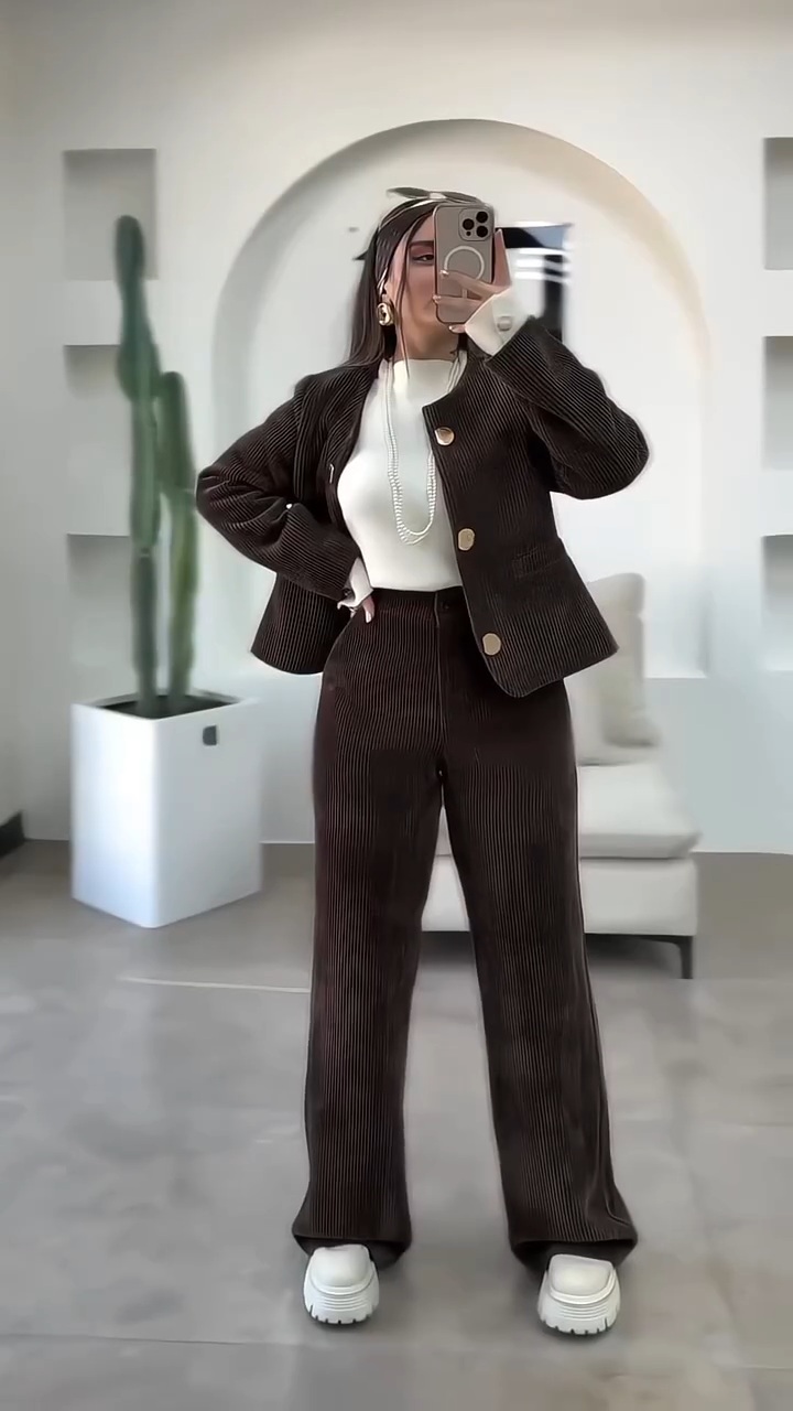 کت شلوار زنانه مدل لاجورد دارای جنس مخمل کبریتی زمستانه در رنگبندی و سایزبندی قابل سفارش است قد شلوار حدود 110 و قد کت حدود 65