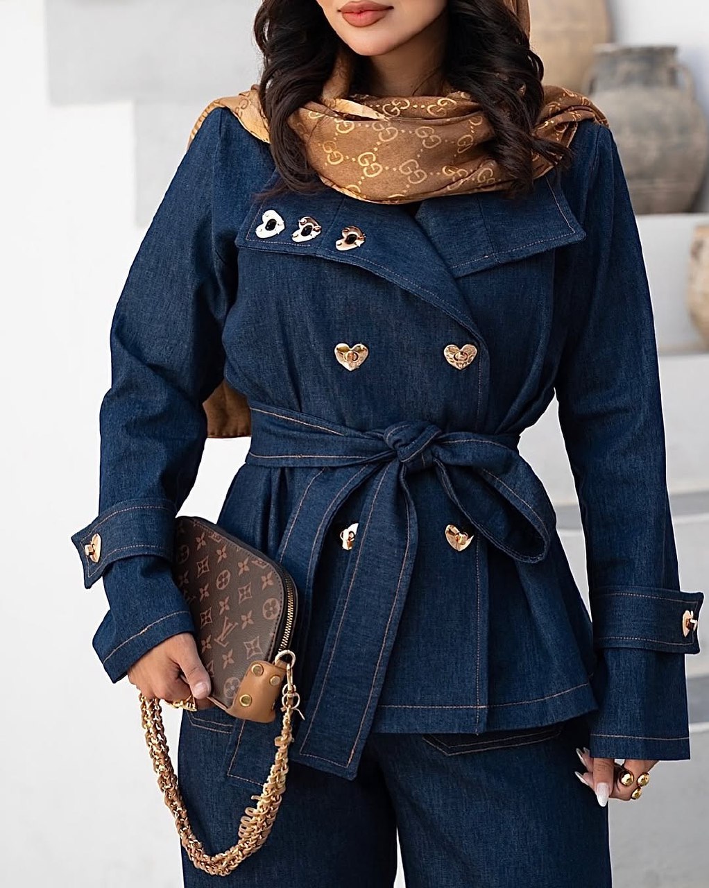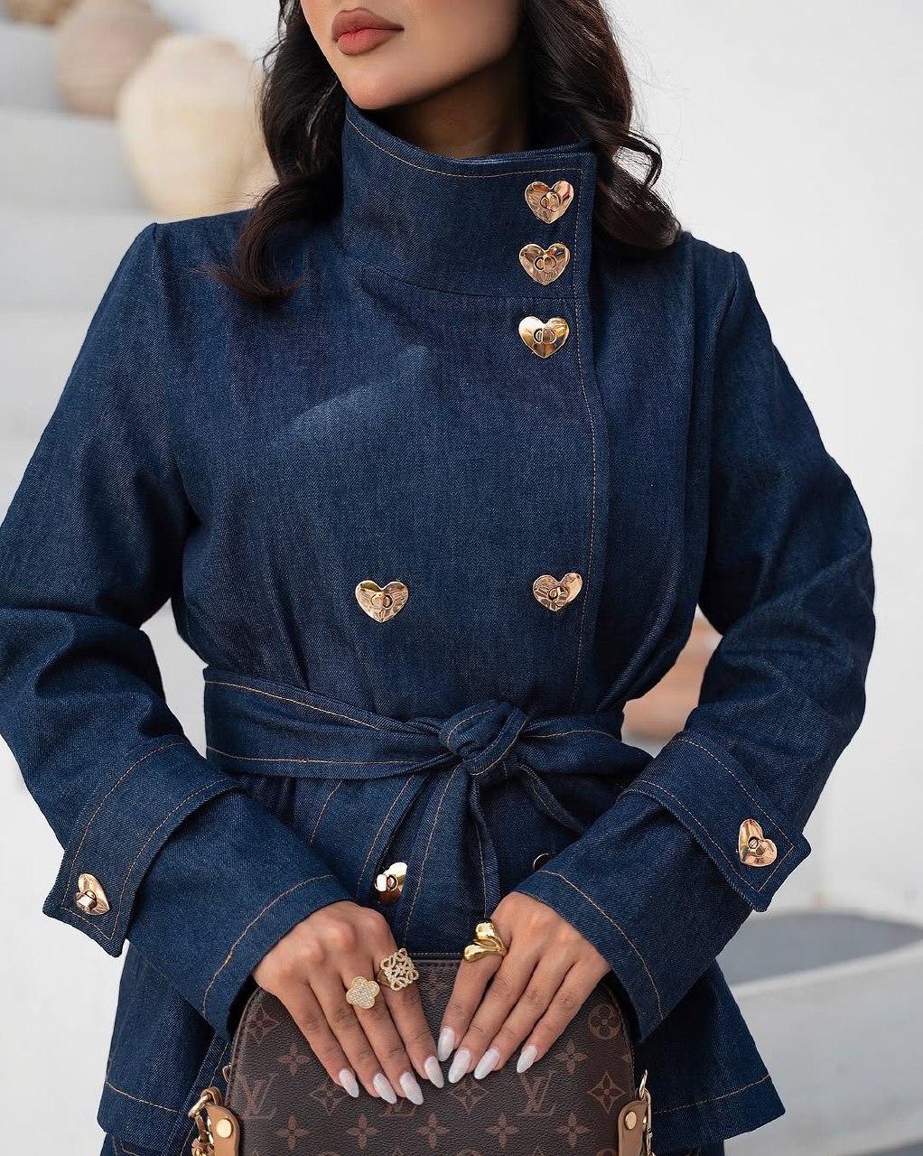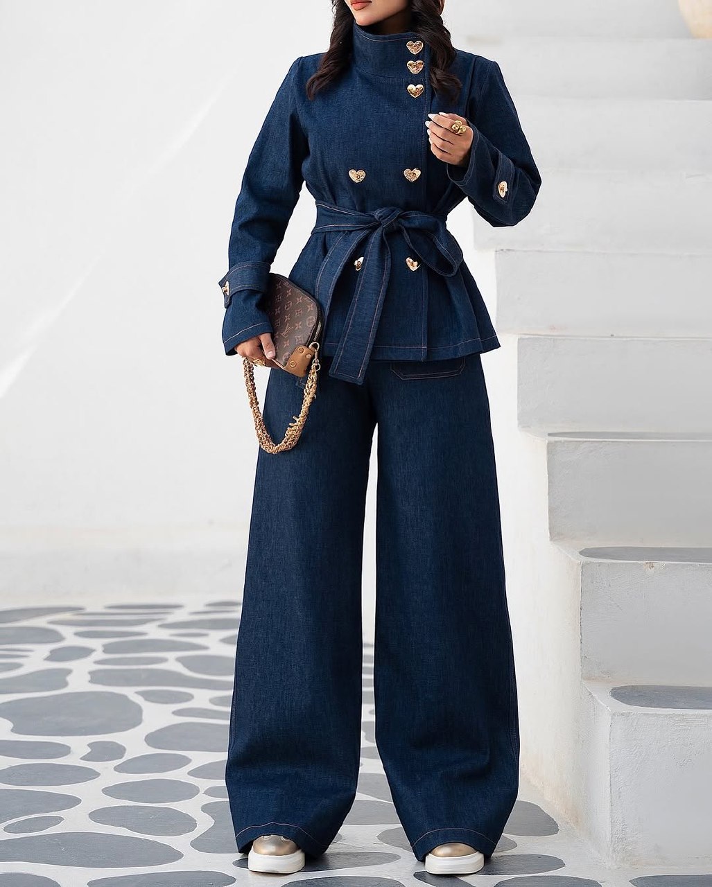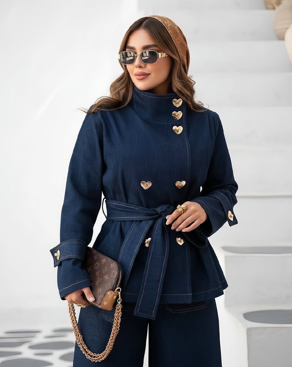 کت شلوار زنانه مدل لاو دارای جنس جین شست شده تک رنگ و در سایزبندی قابل سفارش است قد شلوار حدود ۱۰۶ و قد کت حدود ۶۵