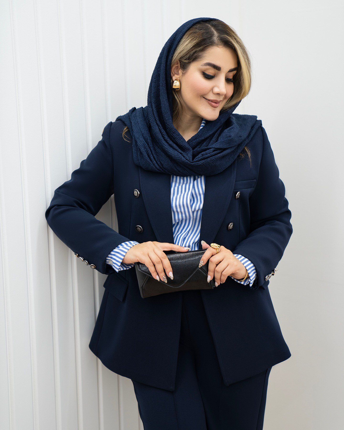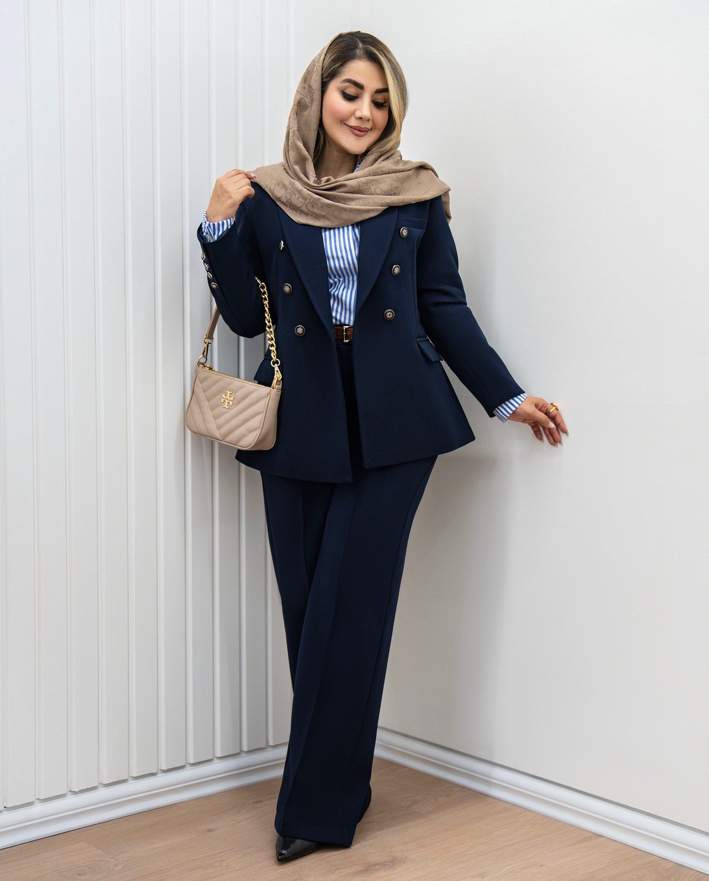 - کت و شلوار زنانه کلاسیک به راحتی با اکسسوریهای مختلف ست میشود و استایل شما را تکمیل میکند.